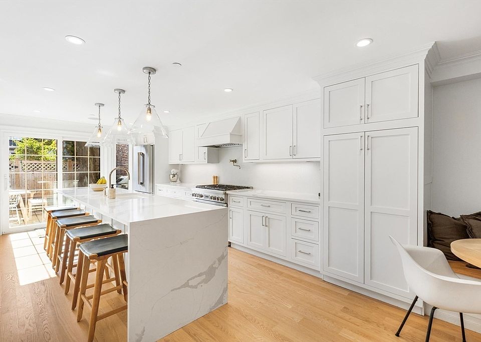 Intentionally gut-renovated in 2020, this single-family gem offers 4 bedrooms, 3.5 baths in the heart of Charlestown. Step inside to an airy, open-concept main level where the living room, dining area, and chef’s kitchen flow seamlessly outdoors - perfect for entertaining. The custom kitchen shines with premium Thermador appliances, sleek quartz countertops, and a striking 11-foot island that anchors the space. Upstairs, two spacious bedrooms offer generous closets, a full bath, and a bright laundry area. Retreat to the top floor primary suite with vaulted ceilings, skylights that pour in morning light, a spa-like en-suite bath with double vanity, and a walk-in closet. The finished lower level adds a fourth bedroom, full bath, and a flexible bonus space for movie nights, a home office, or your personal gym. This beautifully crafted home blends comfort and style in a prime Charlestown location, and just a few blocks from Warren-Prescott K-8.