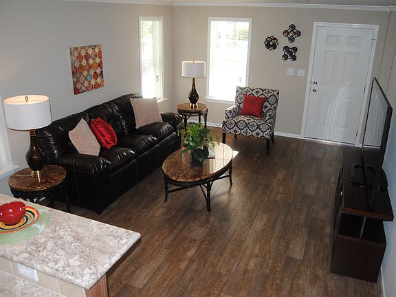 The charming front porch of this brand new home invites you into a lifestyle of resort living. The spacious kitchen features beautifully designed cabinets, gorgeous countertops, and energy efficient appliances which help you save year after year. In addition to the designated dining area, enjoy entertaining friends and family at the breakfast bar which backs up to the well designed great room and features beautiful flooring. The master bedroom is your own private getaway boasting a huge walk-in closet, dual sinks and a convenient easy in, easy out standup shower. The additional two bedrooms are large and have plenty of closet space and plush carpet. This home features washer and dryer hook ups, and an exterior shed for additional storage. The thermal pane windows and vinyl siding also keep down heating and cooling costs and help you enjoy maintenance free living allowing you to unwind on your back patio or deck addition to this worry free home. We understand that you deserve to relax, so call us today and let schedule a tour of your new oasis.