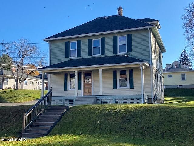 Welcome to this two family flat on the corner of a quiet street within walking distance to downtown with lovely mountain views. Wood floors, replacement windows, newer roof, enclosed porch & front farmers porch. Add your updates or live comfortably as it is. Large yard with garage and out building. Live in one unit and use the other to off set your mortgage or convert back to a large single family home!