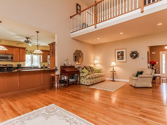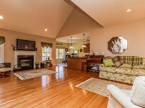 Luxury Living at Lakeview Farms! Beautiful Detached home that features open concept living in a picturesque community that is conveniently located to park, local eateries and I93. This young home features a Bright,Sunny Kitchen with Maple Cabinets,Granite, Stainless, Tile Flooring and Peninsula open to the spacious living and dining room anchored by a handsome gas fireplace and balcony above, creating an easy entertaining floor plan. Convenient first floor master suite with hardwood, walk-in closet and private bathroom. Second bedroom/office is also located on the 1st floor with an adjacent three quarter bath, perfect for guests.Need more space? The second level features a finished Loft with two additional unfinished rooms, one plumbed for bathroom.Lower Level boasts a walk-out basement with full size windows and slider leading to patio with privacy screen. Notable: Back-Up Generator, Plumbed for Central Vac, Covered Front Porch, Back Deck, Insulated Storm Doors & Attached 2 Car Garage.