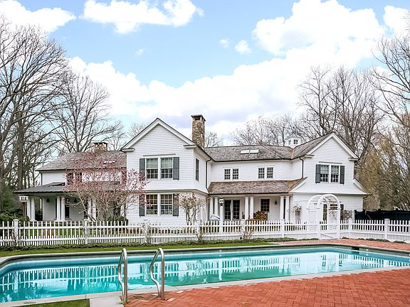Nestled on a coveted darien cul-De-Sac, this custom six bedroom, four full and two half bath colonial offers the ideal combination of convenient location and privacy. the effortless flow between formal and casual living spaces is perfect for both grand or intimate gatherings. Eat-In gourmet kitchen opens to a family room with stone fireplace and built-Ins. this classic home expanded and renovated boasts exceptional details throughout, four fireplaces and a library. master bedroom features a fireplace, walk-In closets and a luxury bathroom. Professional landscaping enhances the patio, private yard and dazzling pool. Additional living space on lower level, of 1,066 sq.Ft., includes playroom, exercise and workshop. this beautiful home is about elegance and easy living