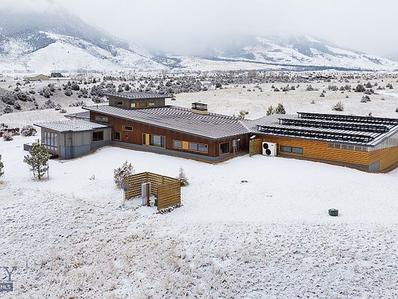 Your dream home is here in the heart of Paradise Valley, just 15 minutes south of Livingston, Montana. Discover the epitome of luxury and sustainability at 8 Hawk Ridge Trail that was built to provide an unparalleled living experience with an array of special features that cater to the Montana lifestyle. The custom design was created to maximize sustainability and embrace eco-friendly living with a 9.975 Kw PV system, passive solar, radiant floor heating and cooling, and a heat pump water heater. Say goodbye to sky-high energy bills – the average electric bill is less than $40/month! Perfectly situated on the 20-acre lot so you may experience the breathtaking natural scenery that's visible from every window. Natural light and stunning views through double and triple paned windows, complemented by Hunter Douglas window shades. You'll find a 3-bedroom, 3-bath one level home plus loft with a total living space of 3440 square feet, including a spacious 4-season room so there is ample room for relaxation and entertainment. Enjoy superior comfort and energy efficiency with R30 double insulated walls and R60 ceiling. Cozy up by the gas fireplace in the main living area or choose from electric fireplaces in the loft, guest bedroom, four season room, and primary suite. The 4-season room that's adjacent to the dining area and patio is a versatile space featuring a wood-fired oven, infrared sauna, river table bar, electric fireplace, radiant heater, and panoramic views of the surrounding landscape. The buried 850-gallon propane tank serves the barbecue grill, patio firepit, and barbecue grill – a true testament to efficiency and convenience and living room fireplace. Radon System & ERV: Rest easy knowing that a radon system is installed for your safety, along with an Energy Recovery Ventilator for improved air quality. Outside, there is an irrigation system installed for grass and the 42 trees that have been planted to date, as well as a rain catchment to a buried cistern that supplies water to five (5) custom made metal vegetable/flower boxes on patio. Other notable advantages to this location include easy access to miles of trails for hiking and cross country skiing a short drive from the property, public access to the Yellowstone River at Mill Creek, 45 minutes to Yellowstone National Park, about an hour from the airport in Bozeman, and so much more! Covenants allow a guest house. Call your Realtor to schedule a viewing of this exceptional home.