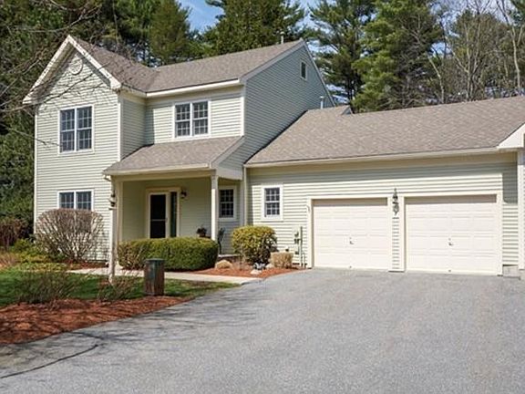 Move right in & enjoy easy living in this stylish Huckins Farm townhouse. Extensively renovated in 2016 with additional improvements in 2019 including the new eat-in kitchen with white cabinetry, SS farmers sink & appliances & granite counter tops. Spacious, open living room & dining room have vaulted ceilings, large windows, skylights, refinished hardwood floors, & new gas fireplace. French doors to 3 season porch & sunny deck offer private views, perfect for outdoor entertaining. Relax in the luxurious first-floor master suite with cathedral ceiling, walk-in closet & spa like, updated bathroom. Convenient on the first floor are access to the attached two car garage, mudroom with additional storage, laundry & half bathroom. The second floor offers an open loft with built-in bookcases, sun-filled second bedroom with en suite bathroom and bonus room. Enjoy all Huckins Farm has to offer-maintenance free living, extensive walking paths, pool, fitness, tennis, club house & horse stables.