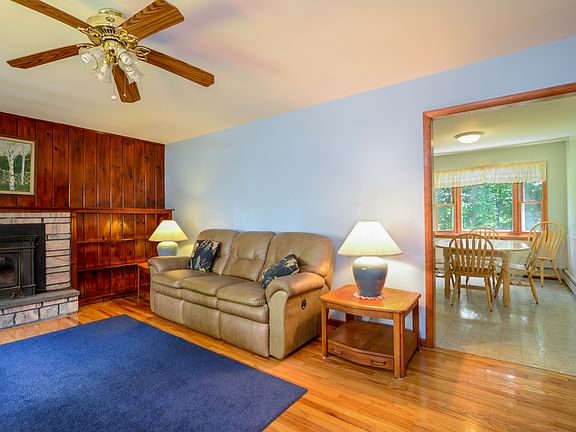 Easy living in this well maintained Ranch. This three bedroom home features a spacious eat in kitchen, living room with built in bookcases, wood floors and wood burning stove, a large Master bedroom and two additional bedrooms, all with wood floors. The lower level has a extra large, two car tandem garage with work space and a finished recreation room. Minutes to highway and shopping.