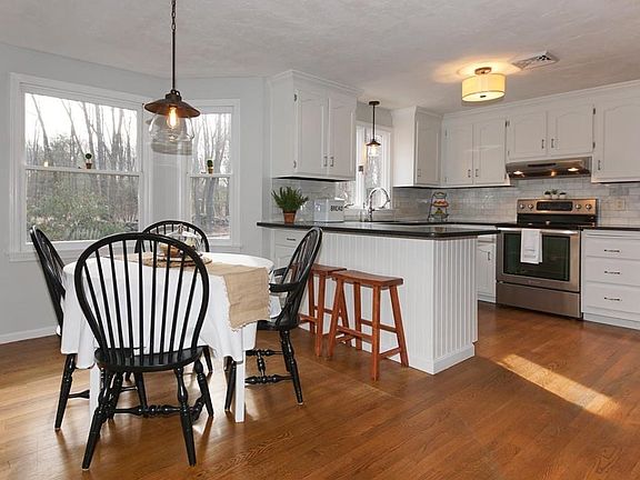 This exceptional home, close to town center, EMC Park, and schools elicits contemporary classic New England elegance. Plenty of space in this 8 room, 4 bedroom, 2.5 bath colonial. The custom cabinet kitchen is enhanced with granite counter tops, carrara marble backsplash, stainless appliances, pantry, hardwood flooring and elegant lighting. Beautifully upgraded half bath. Lovely family room features brick appointed fireplace, creating a cozy atmosphere. Front to back formal living and dining rooms accented with chair railing, and carpeting. Large Master Bedroom Suite boasts master bath and a walk in closet. Three other spacious carpeted bedrooms. Lower level offers grand finished heated space for play/exercise room. 2 Car attached garage. New Central air conditioning and gas furnace recently installed.
