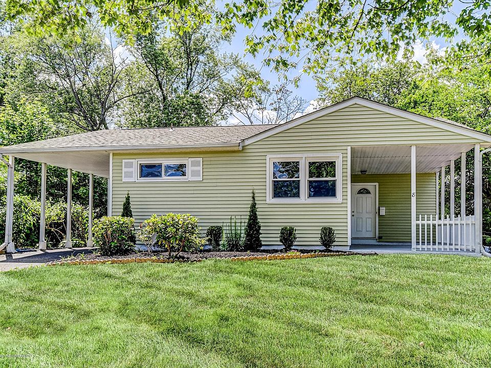 Commuters dream! This beautifully updated 3 bedroom ranch is conveniently located blocks from the Hazlet Train Station. Nothing to do but unpack and enjoy this open layout with Stunning new kitchen / new SS appliances and granite counter tops. Vaulted ceilings in Living room, dining room, and kitchen.Refinished Hardwood floors in all 3 bedrooms. Full basement w/ high ceilings waiting for your finishing touches, would make a great family room. The carport can easily be converted to a garage. Oversized backyard with beautiful paver patio perfect for entertaining. Close to shopping, restaurants, beaches, GSP, major transportation to NYC.