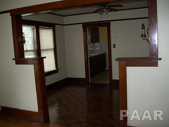 Lots of natural wood work with decorative fire place. Some hardwood floors. Large 20 X 11 front porch. Located on dead end street. Formal dining room with wood floors. Full basement and garage. Price reflects needs a little TLC. Sold "AS IS".