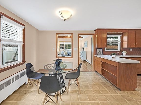 Well maintained Ranch with first floor family room & laundry! Fireplaced living room opens into dining area and kitchen, cathedral ceiling sitting room with beams overlooking a private fenced yard. Two good size bedrooms with ample closet space, cedar closet in front hallway. Full bath on first level, access to attic space in first floor closet. Plenty of storage space in basement with potential & access to the garage, Reeds Ferry Shed for more storage in the yard. Second full bath in the basement. Easy access to VFW Parkway & Route 95, commuter rail & bus and V.A. Hospital & Legacy Place. Open houses Monday & Tuesday, offer deadline Wednesday, April 12th at 3:00Pm