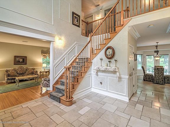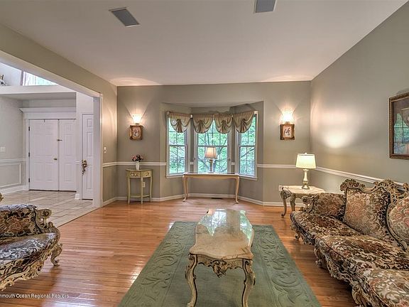Private 1.9 acre treed location at the end of a Cul de sac on Henry Court with a hilltop setting. 2 story foyer with full Oak staircase. Hardwood floors in Living Room, Dining room and Family Room. NO CARPET on first floor. Granite Counters in kitchen w/huge dining area. Banquet style formal dining. hardwood floors in master bedroom with granite master bath vanity top. Panoramic views of the private park like grounds in the front and back.