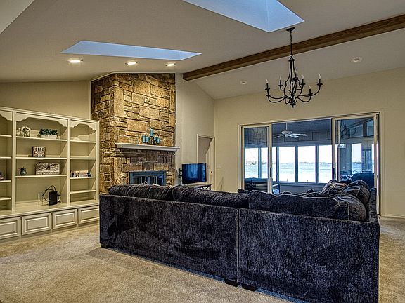 UNBELIEVABLE VIEWS FROM THIS LAKE BALBOA 4 bedroom, 3 bath home with approx. 3,138 sq ft. Situated on flat lot on the point with views from almost every room! Chef's kitchen includes double ovens and refrigerator that conveys. Open the pocket door to a formal dining room with tray ceiling or transform into a game room or guest bedroom. beautiful STONE FIREPLACE, very private master suite with beautiful views to wake up to. So many features with this one including boat dock with lift and swim platform, 253' on lake with stone seawall, hot tub, custom rock waterfall, pergola with stone sitting area, lake fed sprinkler system, extensive landscaping and much more. Call for all extras! Don't miss seeing this one.