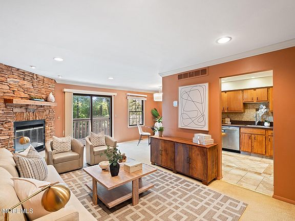 Live your best Jersey Shore life at The Mews! Where style, space, and convenience meet. This beautifully designed 2-bedroom, 2.5-bath townhome offers an open, light-filled layout with a cozy fireplace and slider to a private deck—perfect for relaxing or entertaining under the stars. A dedicated home office provides the ideal work-from-home setup, while the extraordinary basement level boasts soaring 18-foot ceilings, offering endless possibilities for a home theater, gym, or custom entertainment space. Upstairs, the primary suite features a private sitting area, en-suite bath, and generous closet space. A second spacious bedroom, additional office, full bath, and bedroom-level laundry add to the home's comfort and functionality. Enjoy peace of mind with a newer state-of-the-art Lennox UV- enhanced HVAC system, featuring UVC air purification to eliminate bacteria, viruses, and mold spores, complete with a 6-years remaining on warranty. Newer cooling system, Additional highlights include a one-car garage with driveway parking and access to The Mews' sought-after amenities, pool, tennis courts, and more, all just minutes from Jersey Shore beaches, Monmouth University, Monmouth Mall, and Monmouth Park.