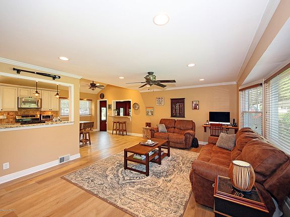 - Ceiling Fan(s), Recessed Lighting, Master Bedroom, Living Room, Kitchen, Family Room, Den, Dec Molding