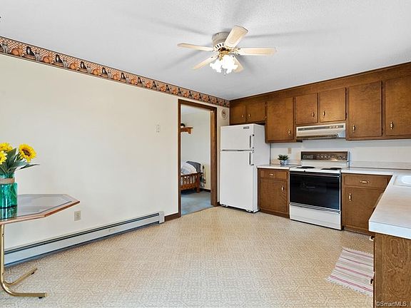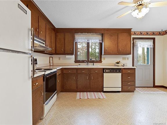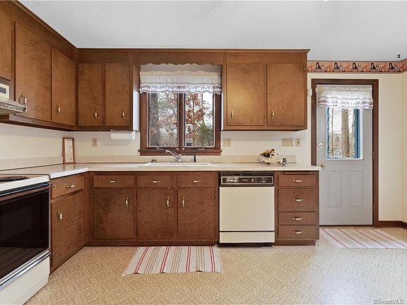 Privatly set back in a quiet little neighborhood on a culdesac street. This traditional ranch has been well cared for. There is a base built for a future fireplace for the livingroom. The heating is 2 zone oil baseboad heating making the home very efficient. The large eat-in kitchen has a lot of counter space and opens to the back deck. Lower level has a finished area that adds over 500sqft of living space.Home has 200 amp electrical service Yard is mostly wooded and fairly private The neighbors to the back are an over 55 development and the other neighbors are hard to see. Plenty of room to add a future garage if needed the large shed does convey.