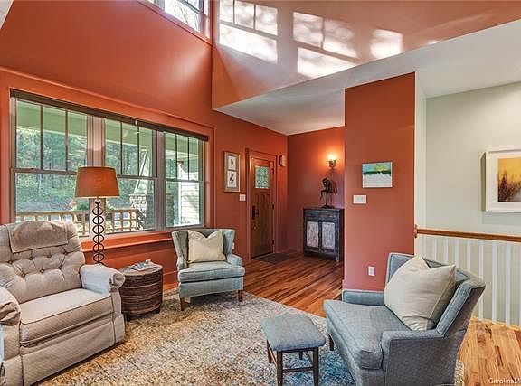 Rare find! Fantastic Arts and Crafts home in Crest Mountain - high quality construction, superb craftsmanship and an exquisite custom kitchen completed in 2017. Enjoy the tranquility of the mountains while just a short drive to downtown Asheville. You might wonder how a home can be warm and cozy yet open and airy at the same time, but this one is just that! Easy to imagine one-level living with master-on-main, laundry, cozy sitting room, open-concept kitchen, dining and living areas spilling onto a spacious screened in porch, but don't sell this place short! The lower level thrills as well: bedrooms, office and family room with stone fireplace and wet bar as well as its own outside decks. Don't wait - this meticulously maintained home is a must see! Some furnishings available for sale.