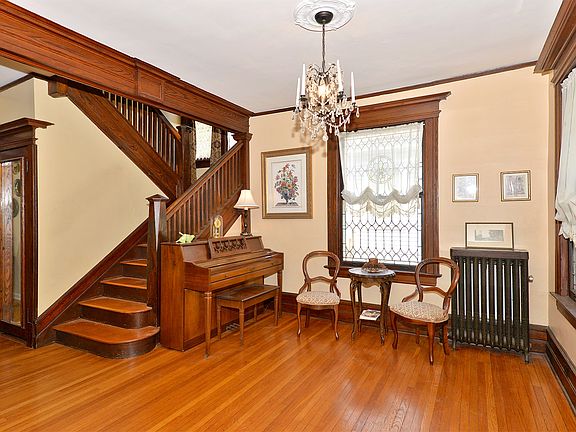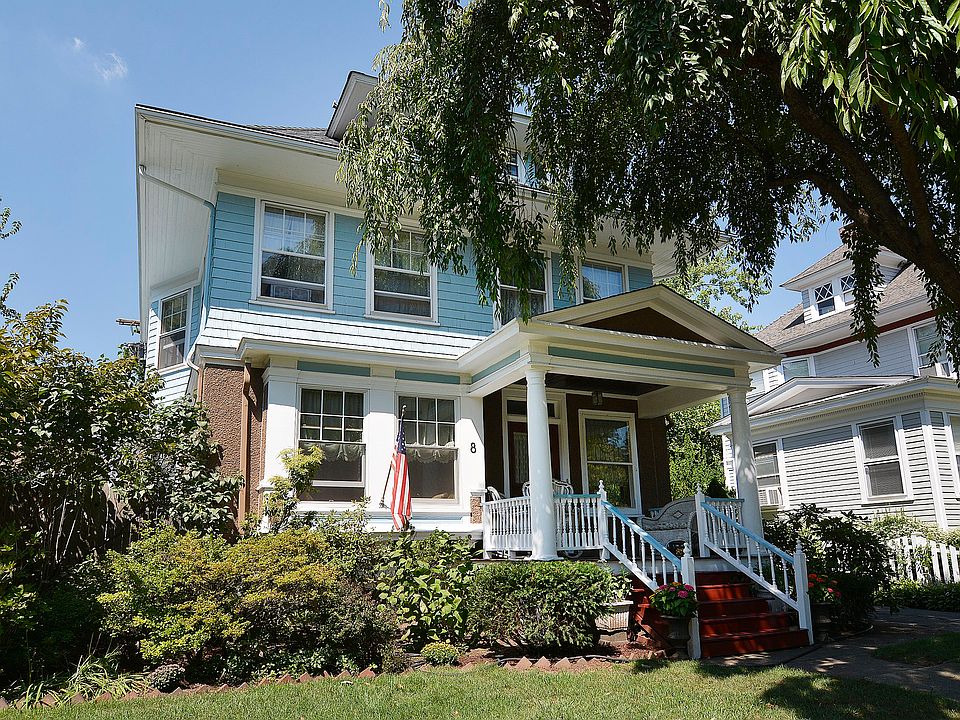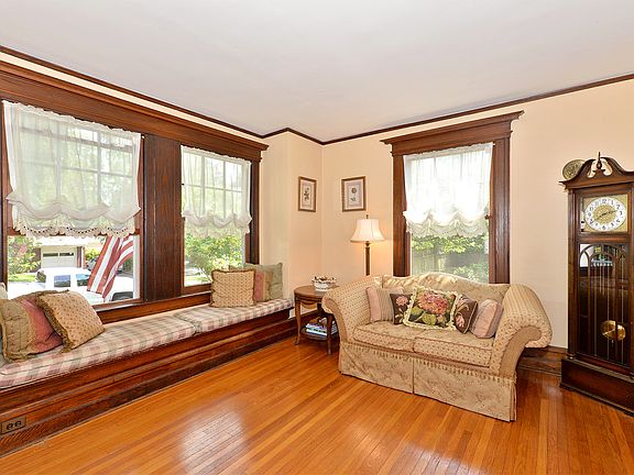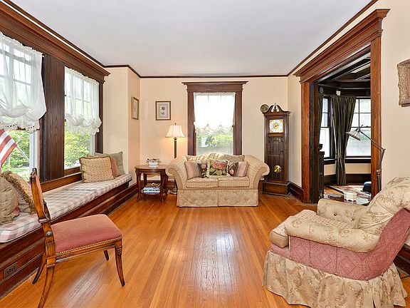 An open porch leads to an impressive entry foyer in this craftsman colonial...and the charm continues throughout! Lots of natural chestnut woodwork, leaded windows, beamed ceiling, pocket doors, beautiful hardwood flrs on 3 levels. Updated E/I kitchen w/ ss app's; newer baths. Fabulous finished basement is the perfect entertainment spot for all ages, featuring rec rm w/brand new carpet, wet bar w/granite counter, travertine floor, ss fridge plus full bath w/radiant heat, office/extra bedroom & outside entrance to yard --could be great au-pair situation. Covered porch off kitchen leads to flat, private, fully fenced yard w/paver patio. Great neighborhood & such a convenient walkable location to two train stations, schools, town.