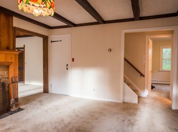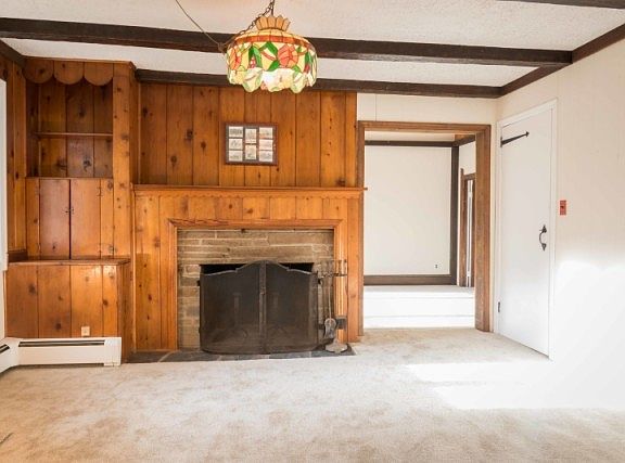 Expanded Cape offers character, charm & location. Updates include; newer vinyl siding & doors, thermo pane windows, neutral paint & carpeting, renovated bathroom, newer W/H. Versatile floor plan. First floor features Pine Backed wood burning fireplace in living room, Family room cathedral ceilings, bay window & built-in window seat. Plus 2 bedrooms, a sunroom or office & renovated ceramic bath. Two bedrooms on second floor plus storage & full bath. Eat-In-Kitchen needs some TLC. 2 Sheds. Parking for 6 or more. Wooded area off of level backyard. Not in a flood zone. Dry walk-out basement, more storage, bilco door to outside that features 2 sheds, ample parking. Wooded lot off level backyard. Private, tranquil location close to parks, lakes, with easy access to 2 trains, buses to NYC Direct. Great Schools!