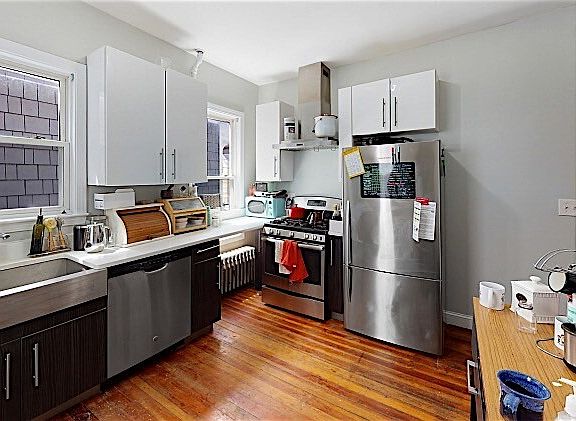 Spacious 2BR/1Ba unit. Updated kitchen w/ stainless appliances including DW, disposal and range hood. Beautiful white granite countertops complete this Euro modern look. Large living room. First floor of 3 family house in Magoun Sq. Right next to Dunkin Donuts, CVS and steps from local bars and restaurants! Close to Ball Sq T-stop. Coin-op laundry in the building.