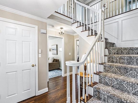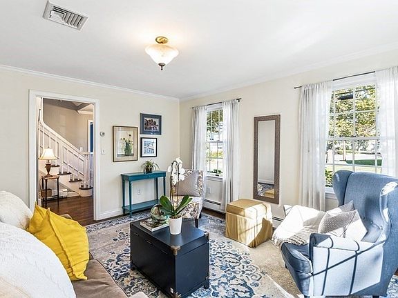 You'll love this charming Colonial located in the coveted Woodlands neighborhood! This gem of a home is in its own private enclave nestled a short walk from nationally ranked Hardy Elementary and tranquil Morses Pond. This spacious home affords you 4,280 sq ft across four finished levels. You enter the home via an oversized 2car garage to a tiled mudroom and finished basement. The heart of the home is the kitchen with stainless steel appliances and adjacent playroom. Rounding out the first floor is a light and bright Living Room, 1/2 Bath, formal Dining Room, and fireplaced Great Room with cathedral ceilings and access to the composite deck and fenced backyard. The primary suite includes a spacious walk in closet and updated bath sure to impress even the most discerning of buyers. Another three bedrooms and a bathroom make up the second floor. Plus the third floor includes two rooms perfect for bedrooms or offices as well as a full bathroom all of which have beautiful tree top views.