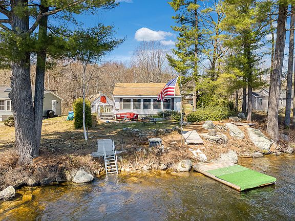 Charming two-bedroom Lakefront Cottage offering 75 feet of private frontage, dock with water entry stairs and additional deeded access to a sandy beach just steps away. Embrace all four seasons of recreational activities. Swimming, Fishing (Brook Trout) and kayaking right from your back yard! Or...Simply relax in the bright windowed lakefront family/dining area and take in beautiful sunrises while you enjoy watching all the wildlife Maine is so famous for including Eagles, Loons, Turkey, and Deer! The Perennial gardens surrounding the property offer an array of colorful foliage from spring-fall. In addition, the property comes with a one car attached garage, a detached two car garage and a small barn offering plenty of storage or perhaps a future bunkhouse! Numerous opportunities await the next homeowner along with the possibility to expand the home by 30%. Property is ready for move in... Just in time for summer! Please Park on Paved part of Driveway when showing property!