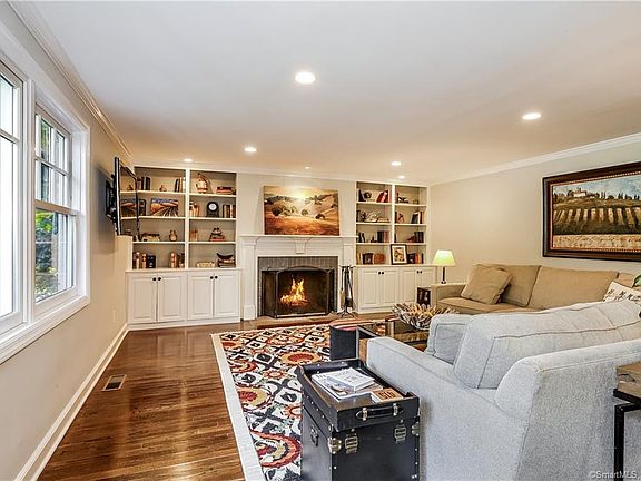 Incredible location in the Ox Ridge school district, this spacious light filled home has great flow, convenient to schools, town & transportation. Set on over an acre this home features 4/5 bedrooms, 3 1/2 baths with a flexible floor plan. The living room has a fireplace with built ins, formal dining room with french doors leading onto an expansive patio, white gourmet kitchen that opens up to a large family room with access to the screened in porch and large yard. There is also a guest suite on the first floor that can double as a second family room or play space. Upstairs is a private master suite with updated bath and walk in closet. There are two additional bedrooms on the second level with a multi-purpose room for work or play. The backyard is private and features a small stream