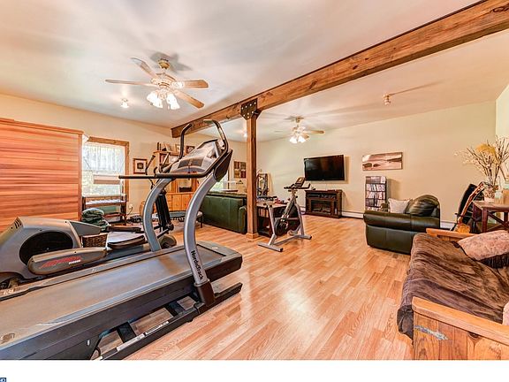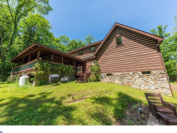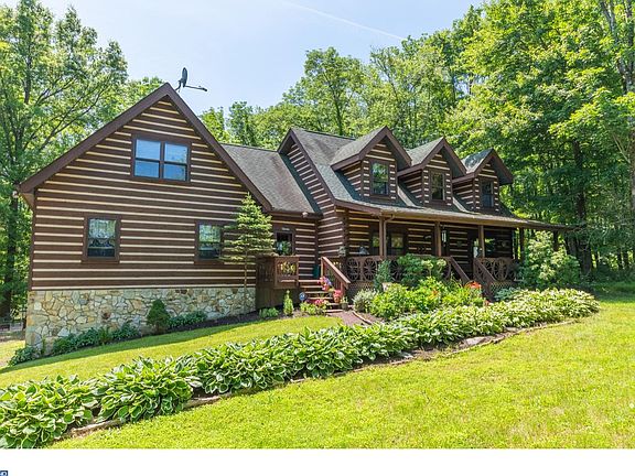 Stunning Log Home with Gorgeous Stone finish in a serene setting backing up to 60+ acres of open land for your use. Nestled in on 5 acres of land with wrap around porch this impressive masterpiece can be yours to now call home! Bring your horses and enjoy years of outdoor fun . Four Stall Barn with seperate tack and feed rooms, electric and water supply overlooking 3 paddocks and a riding ring .Location is close to everything yet down a country road. Trail Ride to the Bucks County Horse park(horse park membership included!) Near Lake Nockamixon , Tinicum park,Delaware River and close to major highways for easy commuting. Entering the home you will see plenty of exposed beams an Eat-in Kitchen with new granite counter tops, plenty of work space overlooking the Living Room with a beautiful River Stone Fireplace and Log Mantle . The Great Room is a wonderful addition for entertaining ,an exercise room and family gatherings. A first floor office with a full bath and Clawfoot tub along with 4 large bedrooms and two full baths upstairs. The basement, with 10'ceilings, enters into the garage and can be finished off for additional space. Schedule your appointments today . This home is Truely a Must See!