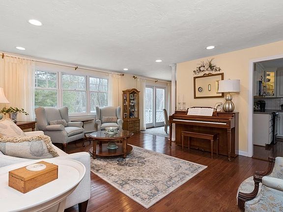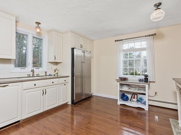 Location, location, location. Coveted, picturesque one acre + property located at the end of a cul-de-sac bordering conservation land. This lovely home is drenched with curb appeal and so many elegant updates done over the years including new Designer Pella windows and doors, newer boiler and oil tank, new lifetime roof, new cedar clapboard siding, fully renovated kitchen and baths. Upper level is open and bright with living room, dining room, kitchen, 2 bedrooms, main full bath and a master bedroom with bathroom. Hardwood flooring throughout; most just installed a year ago. Lower level has a multi-functional den and separate home office area, half bath and laundry. Neutral décor, impeccably maintained. Outside improvements include abundant hardscape, widened, repaved driveway and low maintenance professional landscaping. This home has good storage space and a heated 2 car garage. Title 5 in hand. Showings begin Friday April 13 by appointment. Offers reviewed Mon. after 3:00 pm. Go to www.8HopkinsRoad.com for more information.