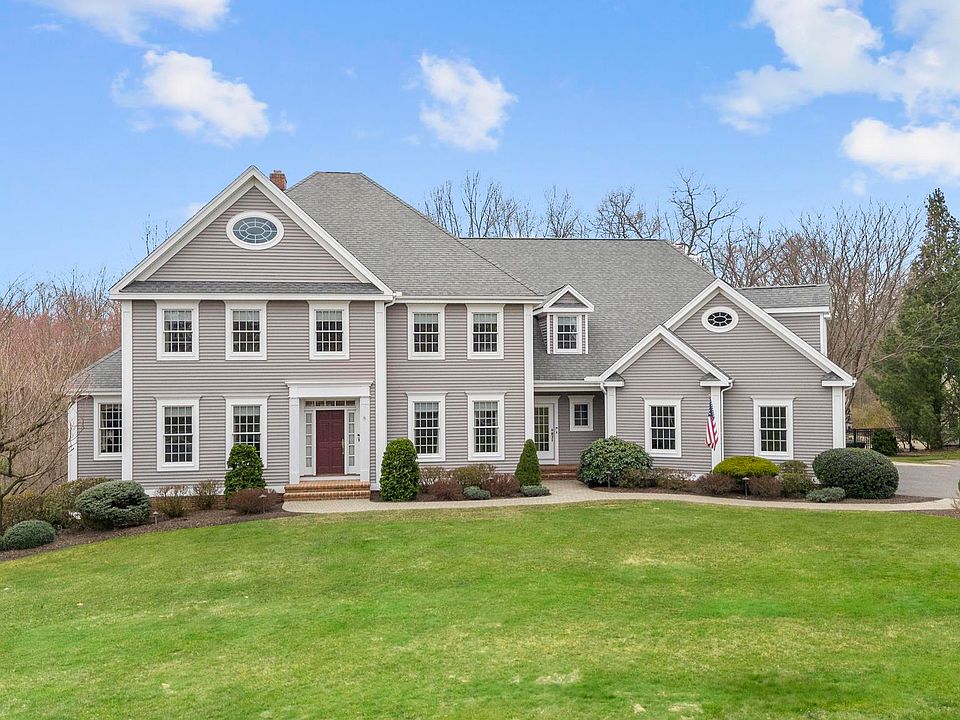 Dreams are made of this! Welcome to 8 Hunters Ridge, a Drisdelle Homes custom build with exceptional quality and meticulous attention to detail! Set on a private 3.48 acres, the backyard is an oasis! Gunite freeform pool (with heater), professionally landscaped, beautiful patios and covered deck too! Step inside the home and begin to soak in the ambiance! Formal living room with custom built-ins, large windows and hardwood floors. You'll be the entertainer of choice in the elegant dining room and you'll love to host from this kitchen! Abundance of counterspace, custom cabinetry and a fabulous pantry! Family room with wall of glass doors leading to deck is sunfilled and the perfect place to gather! With gas fireplace and custom built-ins. The home office is a statement in luxury with palladium window and custom bookcases. The first floor is also where you'll find the sunroom, this beautiful space is where you'll want to start and end each day. On the second floor you will find all 5 bedrooms. The primary suite offers sitting area, windows overlooking the back yard, bath with spa like shower, whirlpool tub, dual vanity and a HUGE walk in closet. Bedrooms 2 and 3 are spacious with Jack and Jill bath, bedroom 4 with private bath and bedroom 5 with built in bookcases a charming window seat, walk-in closet and private full bath! The walkout lower level offers a game area, family room with kitchenette/bar, an exercise room and tremendous storage too! Seeing is believing There is an attached 3 car garage, walk-in attic storage area. Exceptional details in trim work and moldings, 2 staircases, a mud room, amazing closet space. This is a rare find!