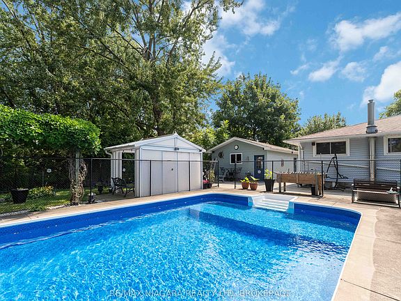 Charming Semi-Detached Bungalow with Detached Garage & Backyard Oasis Welcome to this well-maintained 3-bedroom, 1.5-bath bungalow, ideally located in a sought-after, family-friendly neighbourhood close to schools, parks, trails, and vibrant Port Dalhousie. Step inside to find a warm and inviting main floor featuring a spacious living room with a large bay window and hardwood floors. The cozy dining area flows seamlessly into a functional galley-style kitchen, complete with ample cabinetry and a centre island, perfect for everyday living and entertaining. A convenient side entrance adds flexibility, ideal for families or those considering an in-law suite or rental opportunity. The fully finished lower level expands your living space with high ceilings, a generous rec room with a gas fireplace, a dedicated workshop/laundry area, and abundant storage, perfect for hobbies, or entertaining. Outside, escape to your private backyard retreat. Situated on an oversized, deep lot, the fully fenced yard features a sparkling inground pool, lush landscaping, and a pergola-covered patio plus additional green space for added privacy. A detached garage and double-wide concrete driveway offer plenty of parking and everyday convenience. Move-in ready, this charming home blends comfort, functionality, and outdoor enjoyment making it an ideal choice for families, downsizers, or anyone seeking a backyard oasis in a premium location.