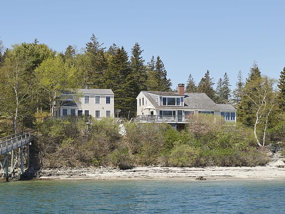 Privately sited on the shore of Hupper Island, this classic coastal property and boater's paradise has spectacular views of Port Clyde Harbor. The year-round three to four-bedroom main house with adjacent two-bedroom seasonal guest quarters, has a traditional exterior and an innovative interior design with upgrades by Steve Thomas Builders. The creative landscape is fully irrigated with stone walls, lawns, intimate perennial gardens and patio areas, recent birch and fruit tree plantings, a work shed, and an integrated stone hot tub with views of the harbor. The property has almost 2± acres of gently sloping land with 300± feet of shorefront including a private sand beach and a deep-water dock with float system and two deep-water moorings.