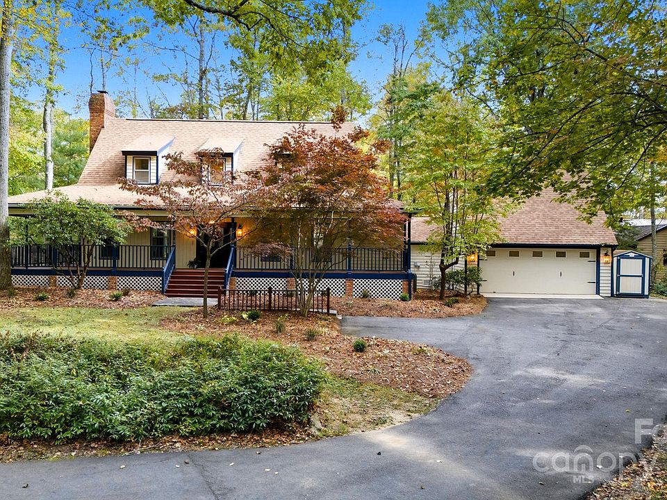 Welcome to 8 Indian Ridge Road! This spacious home, featuring 3 bedrooms and 2.5 baths in the main home, also has a finished space over garage that has an additional full bathroom. Situated on a generous 1.26 acre lot on a quaint wooded cul-de-sac, this home has lots of natural shade and nature-provided privacy from the old growth trees surrounding. Having been completely updated with a full remodel, you'll appreciate all the fine details. This Cape Cod style home has an inviting wrap around covered porch covered with narrow plank wood, offering a great place to relax in rocking chairs and enjoy the Fall breeze. Follow the porch around to the back and enter the glass enclosed Carolina room, offering a respite to enjoy the outdoors even when cooler outside. As you enter the front door, you'll appreciate the new waterproof laminate wood flooring throughout the main level. The large living room features a centerpiece brick fireplace with Buckstove wood burning insert to keep cozy on the colder nights. The fully remodeled and modernized kitchen is open to a nice dining area and there is a half bath on main for guests. Don't overlook the built-in coffee bar nook also! The Primary Bedroom is also on the main level and features an en-suite full bath with dual vanities and custom tiled walk-in shower. Upstairs you will find two additional bedrooms, each having a total of three closets, including a nice walk-in. Laundry closet is also located upstairs. Out the backdoor, you'll find the breezeway to the utility room and detached two-car garage. Stairs will lead you up to the finished space over garage which has a nice carpeted room and full bathroom with shower. There is a utility shed and a shop building with power and foam board insulation - possibilities are endless for what you do with this extra space! You'll appreciate the fenced back yard where the outdoor firepit area is - a great place to entertain friends or just relax! If you're worried about losing power in inclement weather, don't - this home has a Generac whole home generator included. If you are looking for living in the heart of Western NC with privacy and also a neighborhood feel, then this home has it all. Truly move-in ready! Take the virtual tour here: https://my.matterport.com/show/?m=FCLQgB346oE& and see the property video here: https://listings.wncrealestatephotography.com/videos/0199e881-a69f-721f-8cbe-8e8d1e262800