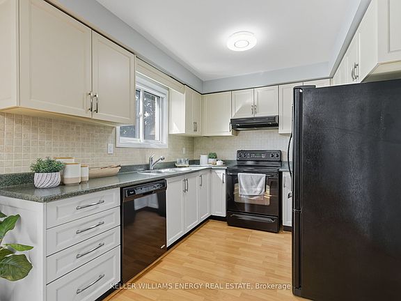 Welcome to this well-maintained 3+1 bedroom, 3 bathroom linked detached home located in a family-friendly neighbourhood in Courtice! This bright and inviting home features a functional layout with a combined living and dining area perfect for both everyday living and entertaining. The kitchen overlooks the private backyard, which includes built-in seating on the deck, great for outdoor gatherings and BBQs. Upstairs, you'll find three bedrooms, including a comfortable primary bedroom with a 2 piece ensuite. The fully finished basement offers even more living space, complete with a cozy rec. room, an additional bedroom, and a wood-burning fireplace, ideal for relaxing or hosting guests. Enjoy the convenience of being just 2 minutes from local schools, making morning drop-offs a breeze. Everyday essentials are close by also: Tim Hortons, McDonalds, A&W, and major banks are only 5 minutes away Starbucks, Shoppers Drug Mart, Dollarama, and Food Basics are just 2 minutes away. Oshawa's Lakeview Park and waterfront trails are a quick 10-12 minute drive, perfect for weekend outings. This home offers comfort, convenience, and a prime location, an ideal opportunity for families or first-time buyers a like. Don't miss your chance to call this beautiful Courtice home yours!