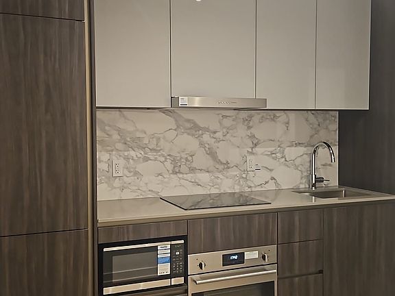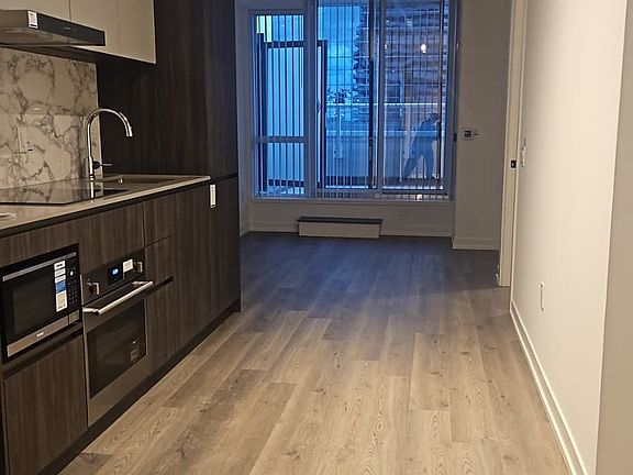 Step into luxury with this stunning 1-bedroom + spacious den (easily convertible into a second bedroom or home office), featuring 2 full upgraded bathrooms. This beautifully designed unit boasts an open-concept kitchen and living area that flows seamlessly onto a large east-facing balcony with clear views. The modern kitchen has a sleek backsplash, top-of-the-line European appliances, panel-ready fridge and freezer, dishwasher, and elegant laminate floors. Window blinds add a touch of privacy and sophistication. Prime Location: Steps to VMC Vaughan Subway Station easy access to downtown Minutes to Highways 400 & 407York University & YMCA (3-min walk) 24-hour bus service on Highway 7Close to top amenities: IKEA, Costco, Cineplex, Dave & Busters, LCBO, major retail stores, grocery stores, Canadas Wonderland, Cortellucci Vaughan Hospital, and Vaughan Mills Shopping Centre.