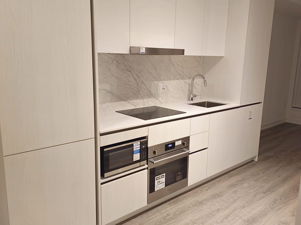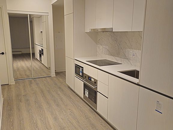 Open-concept layoutFloor-to-ceiling windowsEngineered hardwood flooringSleek kitchenIntegrated stainless-steel appliancesIn-suite laundry