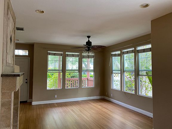 Single-family detached home fronting to a small park with the white picket fence. Corner lot with private side yard, low maintenance landscaping, bamboo flooring, granite counter-top, stainless steel appliances. French door from the master bedroom to the upper covered balcony overlooking the park and beyond. Two car driveway in front of the attached garage.