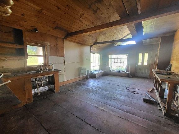 11983 - Large truck garage, 25'x80' with overhead door. Tons of room for Logging/tractor trailer truck or lots of toys! Attached is a one bedroom/one bath living space that needs work. 34+/- wooded acres with a nice open area around the garage. This property has a long gravel driveway offering privacy, a well, septic, and even a small pond. It is not hooked to electricity though it is available at the roadside. The solar is no longer in working condition. Great location with an easy commute to Augusta or Auburn. Come see the potential!