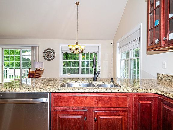 OPEN HOUSE CANCELED ..... A rear find, a home at Annandale on the River, Litchfield NH and even rarer find the Ranch style Blakemore home design. Annandale is a 55 and older community for active adults. This unit sites at the end of a 3 unit cul-de-sac with privacy and views from the interior or while sitting on the oversize deck of the wooded natural conservation area which shields the homeowners from views of the neighborhood in four season of natural wounder. Flowers, trees, lush lawns are natural habitat for the birds and wildlife in this tranquil setting. The interior is all that you expect, tile and hardwood flooring and granite counter tops in upgraded custom kitchen cabinetry. There is a gas fireplace in cathedral living room to warm you and create atmosphere on those chilly nights and of course central A/C for these warm days of late. 2 full baths and the primary bath in the ensuite bedroom has a walk in shower and spacious double sink vanity with a tray ceiling giving the room volume and spaciousness with sliders to the double sized deck. The home features an oversized entry way lead you to the French doors on the office/study and to the 2nd guest bedroom with 2nd bath steps away. 1st floor laundry complete this level. For additional living the lower level consists of a professionally finished family room that can accommodate all you needs.