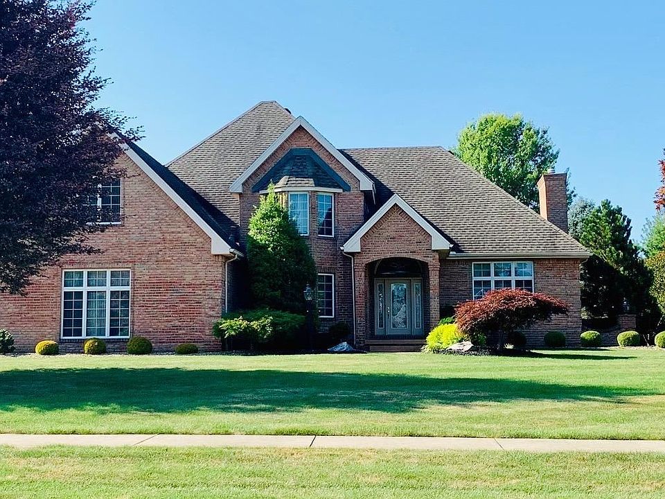 <p style=margin: 0px; 0px;=>BEAUTIFUL BRICK EXECUTIVE ESTATES HOME! 4 Bedrooms 3.5 Baths, 2 Car Garage, with Nature Stone flooring off the main driveway. 3rd car garage in the rear of the property. Beautiful Entrance Foyer with view of Open Stairway. Main floor Master suite and laundry. Formal Living & Dining rooms. Hardwood flooring, home is wired for sound. Finished Lower level w/additional sleeping room & bath, also a Workshop with access stairs to garage. Bonus room above garage with access to the attic. Beautiful setting on .6887 acre lot with professional landscaping and a sprinkler system. Concrete patio off of the sunroom.</p>