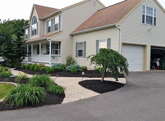 Beautiful rocking chair front porch, 4 bdrm 3 full bath colonial. Enjoy the views from your porch that overlook the beauty of a vineyard. Or sit in the privacy of your yard on your stamped concrete patio. This home has an EIK that opens into a family room/living room area w/ a pellet stove heater. A formal dining room with custom paint and chair rail moulding. The second level has 4 large bdrms and 2 full baths. Get away in the oversized master bedroom that features a large sitting room. Check out the custom paint throughout the home. All the flooring and carpets are new. Large shed with overhang.