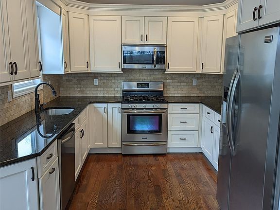 This six year young bright open colonial on a dead end street features 2,200 square feet, including 4 bedrooms and 2.5 baths! The main level boasts a stunning kitchen with granite countertops, stainless steel appliances, dining area, and backyard access. Remarkable living room with gas fireplace, 9 foot ceilings, wood flooring throughout, half bath and laundry. The upper level features a primary bedroom with vaulted ceiling, walk in closet, and full bath. 3 additional large bedrooms and a full bathroom complete this home. Additional features include dual zoned central air conditioning, a full basement, inground sprinklers and a backyard paver patio. 2 8x12 sheds included.