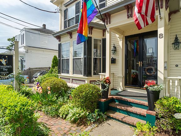 Steps from Commercial Street and Provincetown Harbor you will find a charming mid-nineteenth century building, currently operated as Christopher's by The Bay guesthouse. 8 Johnson can go from being Christopher's by The Bay to Your Home by the Bay! The property would make a wonderful single-family home, a rental property or a combination of the two. There are lots of options for the home with 11 bedrooms, two fireplaces, views of the bay and townscape, ample off-street parking, lovely gathering spaces both inside and out, and a prime central location. In keeping with the period, the main floor features high ceilings, an inviting entry, a parlor with fireplace, two bedrooms with private baths, dining room, kitchen and another bedroom and bath. An expanded kitchen, dining and living space could be achieved with a re-design of the space. The second floor has three nicely sized bedrooms, one with fireplace, each with private bath. The views of the harbor and town from the top floor are wonderful. This level is currently comprised of 5 smaller sized bedrooms with a large shared bathroom and water closet. A fabulous master suite would be a great re-imaging of the space. In addition to the indoor gathering spots, the enchanting bricked patio surrounded by greenery and water feature provides for nice outdoor enjoyment and entertaining options.