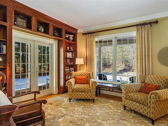 Vibrant, beautifully maintained, sunny Colonial home scaled rooms, elegant detail, custom built-ins, HW floors, oversized transom windows & French doors. A wide paneled wraparound mahogany porch sets a welcoming stage, opening to a double-story entry hall, a formal LR, elegant DR & a comfortable FR fireplace. Design exceeds all expectations in the flowing, open-concept kitchen filled amenities, granite counters, ss appliances, a center island seating for up to 4 people & an informal dining area offering 3-exposure views of the private backyard. Ideal for holidays & chilling after school or work, this amazing design is anchored by a gorgeous sunroom cathedral/skylight ceiling, heated tiled floor & adjoining pergola-covered dining patio. Upstairs is the luxurious master suite featuring his & hers closets, a master bathroom 2 sinks, whirlpool tub & shower. 4 more bedrooms, 2 full baths, laundry room & 2 staircases leading from the main floor complete this spacious 2nd floor. Beautifully finished 638 s.f. LL includes a FR fireplace, gym & game areas & a full bathroom. The outside areas offer wonderful outdoor entertaining: poolside patio bluestone fire pit, swimming in a fabulous salt-water pool featuring waterfalls & a retractable energy saving pool cover or playing on velvety level lawns. Elegantly crafted by Jack Kemper, this stunning home on a cul-de-sac street close to Avon's town line is conveniently located to shopping, schools & restaurants