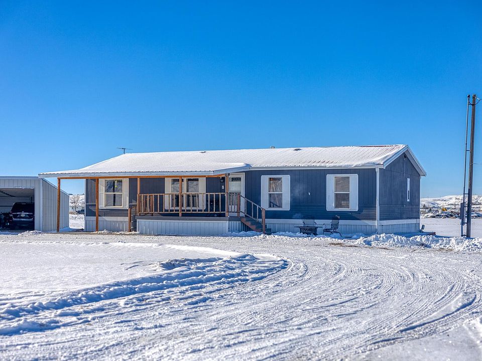 Remarks: Mountain views are included with this 4-bedroom, 2-bathroom Manufactured Home on a permanent foundation. Step inside to find hardwood flooring in living, dining and bedrooms. The kitchen, has plenty of room to accommodate those holiday get togethers with plenty of natural light. As a sanctuary to relax at night and recharge for tomorrow, the main-floor primary bedroom is where to be. The other 3 bedrooms are ready for guests or residents, and for your decorative touches. The large yard provides plenty of room for all those gatherings. Facing the street, a breezy porch is a structural hello to passers-by and a nice spot for relaxing with beverages, whether in solitude or among friends or neighbors.