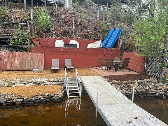 Plan your summer on Hamilton Reservior. Enjoy this year-round cottage with a private sandy beach and dock. This waterfront opportunity with stunning lake views and tremendous potential won't last. The interior features an open-concept layout with living room with fireplace with access to an exterior deck, a spacious kitchen, and a dining area perfect. The lower level offers two bedrooms, each with direct access to private decks overlooking the lake and a laundry room. All furnishings to remain, personal items will be removed prior to closing. This property will not qualify for conventional financing. An excellent chance for a builder, contractor, or handy buyer to purchase at a great price and gain sweat equity. Being sold "as is". Repairs necessary: Septic system. . Original stairs to water need repair/ replacement. Deck supports need to be reinforced FYI:sold "as is." Title V is Buyer's responsibility. Buyer / buyer's agent should compl for due diligence.