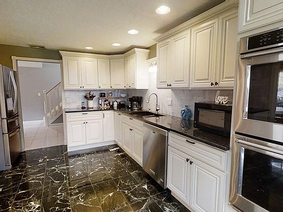 - Kit Dscrp: Pantry, Countertops - Stone/Granite/Solid, Cabinets - Upgraded, Skylight, Stainless Steel Appliances, Recessed Lighting, Walk-In Storage, Flooring - Marble, Ceiling - Vaulted