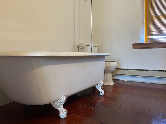 Historic 1 bedroom, 1 bathroom stone house with wood stove. Open kitchen/living area with kitchen island. Beautiful wood beams and curved staircase. Antique claw foot tub and shower. Beautiful view of surrounding fields. Located on a quiet historic gravel road. Great for jogging and cycling. Minimum 1 year lease then month-to-month. First, last and security due upon signing. Application required. Background check and credit check required. No smoking.