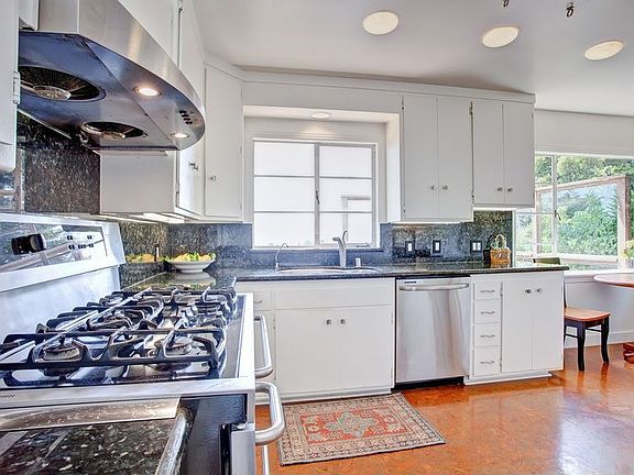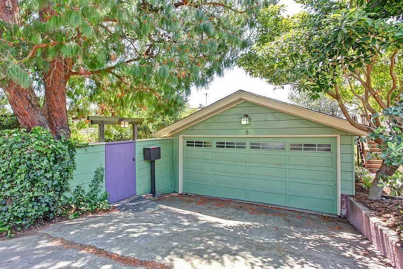 Gorgeous views from this special mid-century artistic home with unique redwood details. Flexible floor plan can be 2bdrm/1ba one-level home with gracious 1bdrm/1ba in-law below OR 3bdrm/2ba with large family room. lovely entry courtyard and fully landscaped yard. Many energy saving features. Main floor opens to a deck with spectacular Bay views. Lower level opens to a beautiful private garden. Complete with detached 2-car garage.