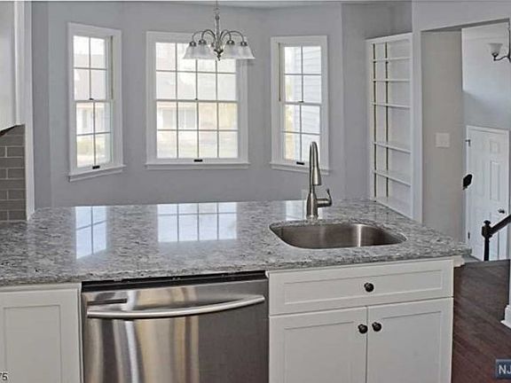 Totally renovated townhouse - new kitchen w granite SS. All baths have been recently renovated. Dark oak floors on 1st floor. First floor has EIK, DR LR w cathedral ceilings, FP, powder room and tiled entry foyer, sliding doors to private deck. Second floor has 2 bedrooms and 2 full baths, both renovated. Bonus room in the basement. Oversized 1 car garage, central air, central vac, furnace, AC 2 yrs old. Steps from association salt water pool. Close to rain and bus to NYC. W D "as is