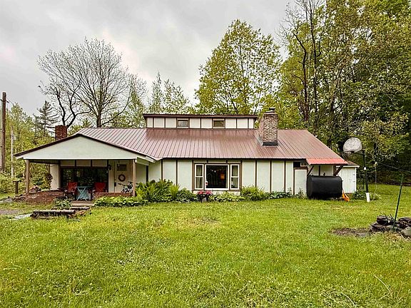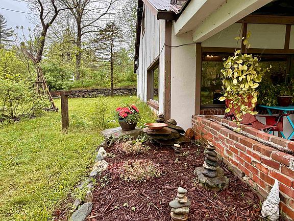Welcome to your Westford bungalow, located off a beautiful, country dirt road, only minutes to the center of town! You'll fall in love with the charm of this unique home as soon as you step inside from the covered porch entry. A warm and spacious kitchen/dining room is equipped with updated appliances and two beautiful picture windows, that allow you to look out at the beaver pond across the road. A hearth is ready for you to hook up a wood stove, or use it as it is now, a wonderful location for plants and fairy gardens. With 2 bedrooms, a full bathroom and the laundry room on the first floor, you have options for how to use the space. An open living room with 1.5 story rock fireplace, vaulted ceilings and exposed beams will become your favorite room in the house. The brand new hardwood staircase with wrought iron banisters to the second level is a showcase and was a wonderful upgrade, along with new vinyl plank flooring on the first floor. The second level has another bedroom, 3/4 bathroom and huge primary bedroom with two bay windows. Outside you'll find lovely landscaping and established perennials, a tranquil stream and play gym area, and a newly installed perimeter drain. This home is wired for a generator and is only 10 minutes to Fairfax, 20 minutes into Essex and 35 to Burlington. You don't want to miss this affordable home!