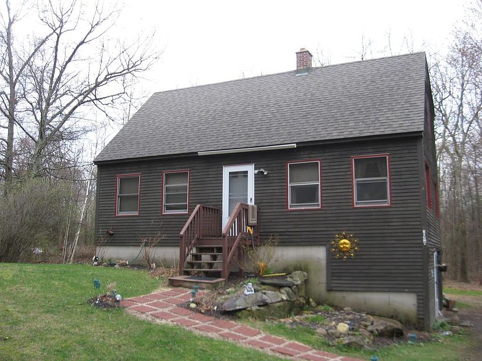 Great home in a very secluded area yet only minutes to both Amherst and Belchertown. Nice three bedroom Cape/Saltbox style home has beautiful wood floors both up and down. Spacious kitchen opens up into dining area and large living room with brick hearth and wood stove. Private back yard with more room to do what you want with just over 3 acres of land. One car garage under is great for convenience. 13 minutes to UMass....