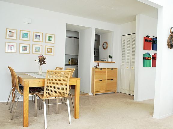 Beautifully renovated 1 BR/1BA non-smoking upper level condo with entrance thru private landscaped flagstone patio. Lots of south light and clerestory windows in cathedral ceiling living/dining area, w/d in unit, limestone tile floor in entry, kit, bath. heat, hot water, cooking gas, trash, and snow removal incl. in rent, 1 s/m dog, and 1 cat OK, located within walking distance of shopping center, town rec center, and senior center. reserved parking space, and plenty of visitor parking. very quiet area of Fox Hill. Owner lives in complex. ! mo sec & 1st mo, plus pet deposit, if any pets